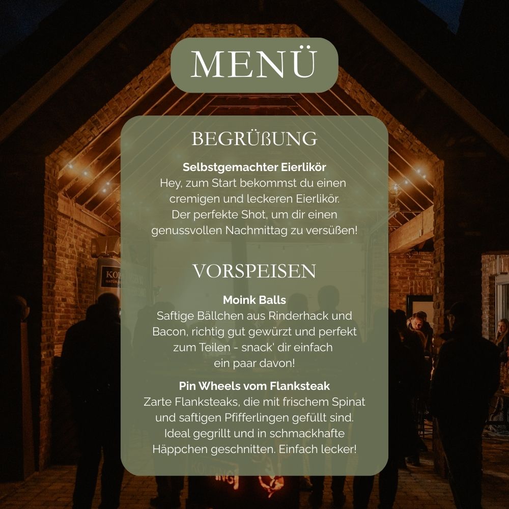 Dazu gibt’s passende Getränke, entspannte Atmosphäre und ehrliche Gespräche unter Fleischliebhabern.