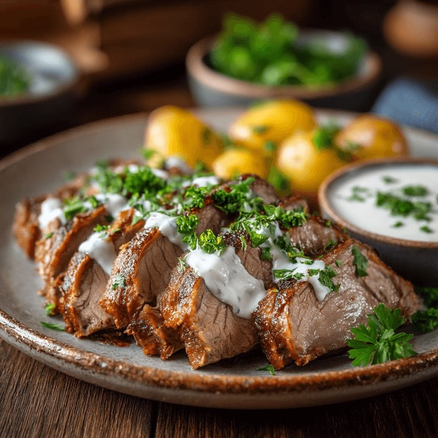 GEKOCHTE BULLEN ZUNGE MIT MEERRETTICHSOßE