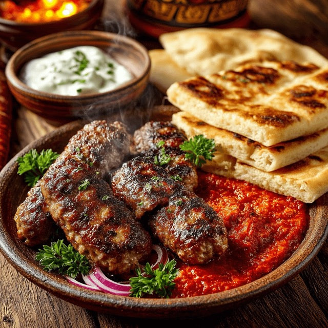 CEVAPCICI MIT AJVAR, ZWIEBELN & FLADENBROT