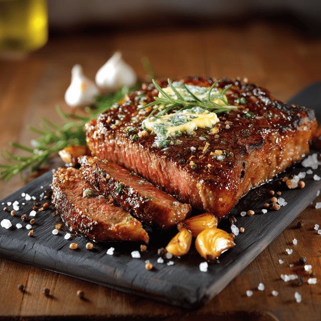 ENTRECÔTE MIT KNOBLAUCHBUTTER & ROSMARIN