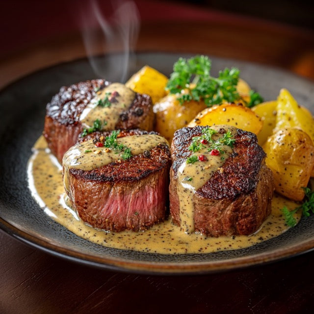 FILETMEDAILLONS MIT PFEFFER RAHMSAUCE