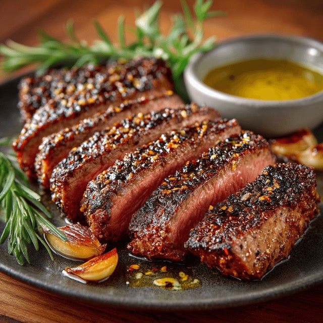 FLAT IRON STEAK MIT KAFFEE CHILI RUB & KNOBLAUCHÖL