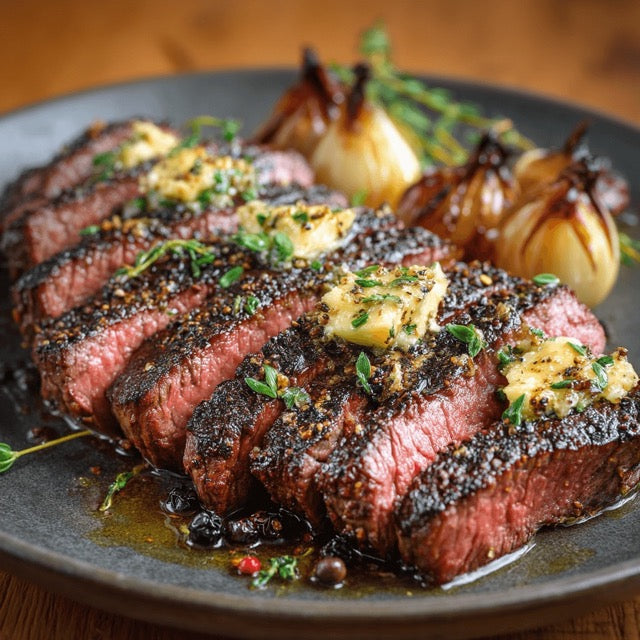 NIERENZAPFEN MIT SCHALOTTENBUTTER & GROBER PFEFFERKRUSTE