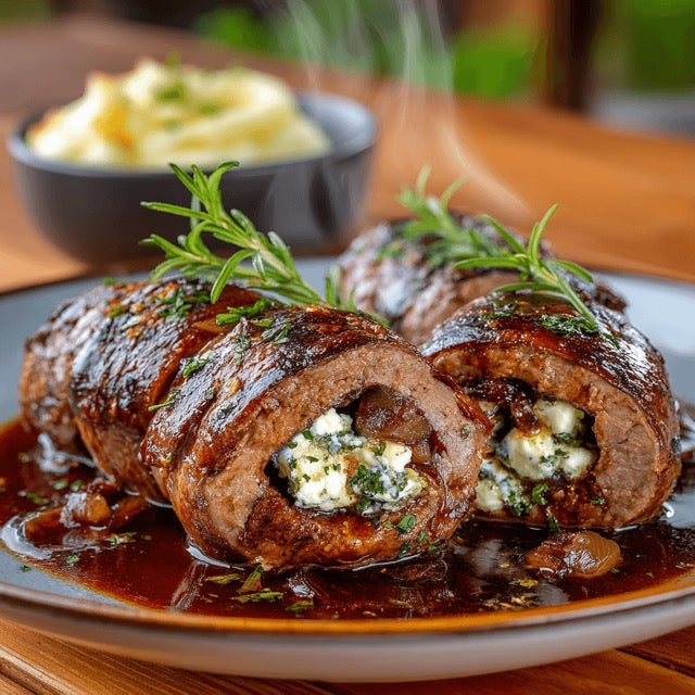 RINDERROULADEN MIT DATTELN, FETA & ROTWEIN-SCHALOTTEN-SOSSE