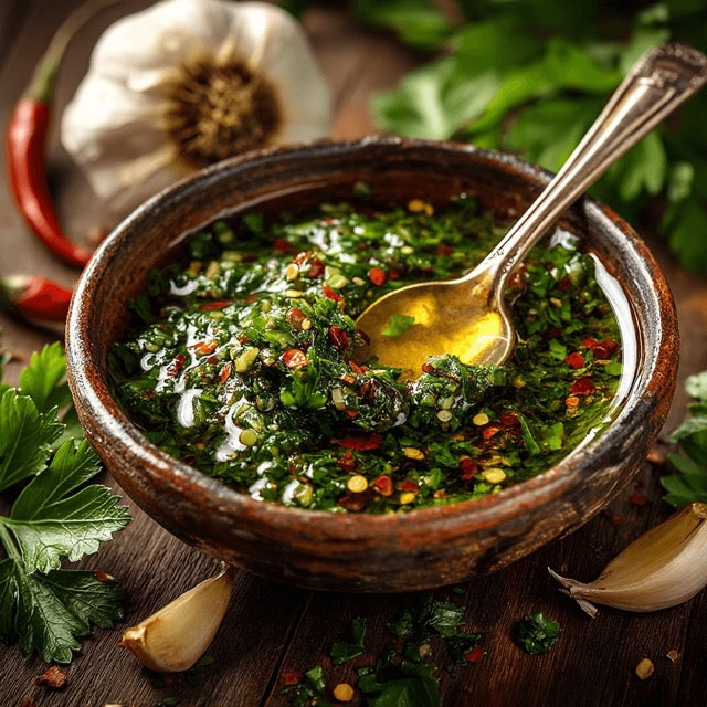 Die Chimichurri-Sauce passt hervorragend zu gegrilltem Rindfleisch, aber auch zu Gemüse oder Fisch. Im Kühlschrank hält sie sich bis zu 3 Tage.