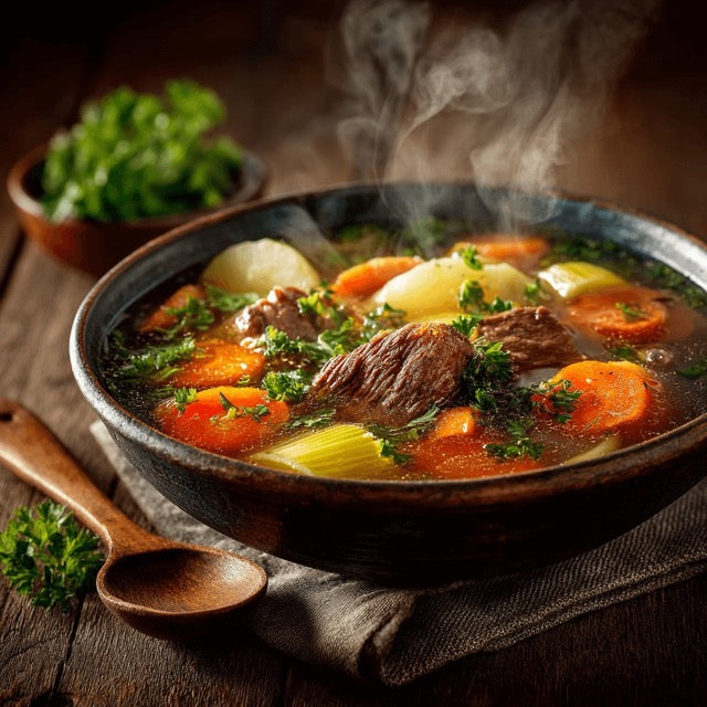 Als klare Brühe mit Einlage, mit Markklößchen, Nudeln oder Pfannkuchenstreifen – oder als Basis für Suppen und Soßen.